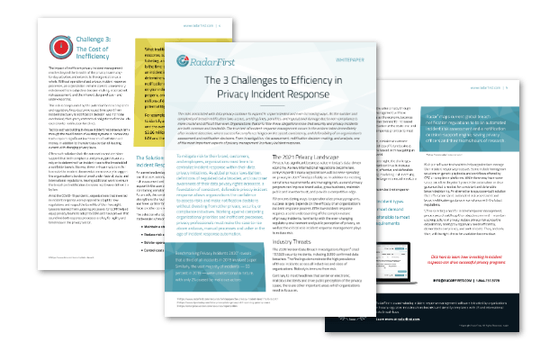 As part of our exploration into the challenges to efficiency in privacy incident response, we’re diving into the first aspects of every privacy incident response management process, incident discovery, investigation, and escalation. With a solid understanding of these processes, we can better identify barriers to organizational inefficiency and help expedite notifications when they’re required for compliance.