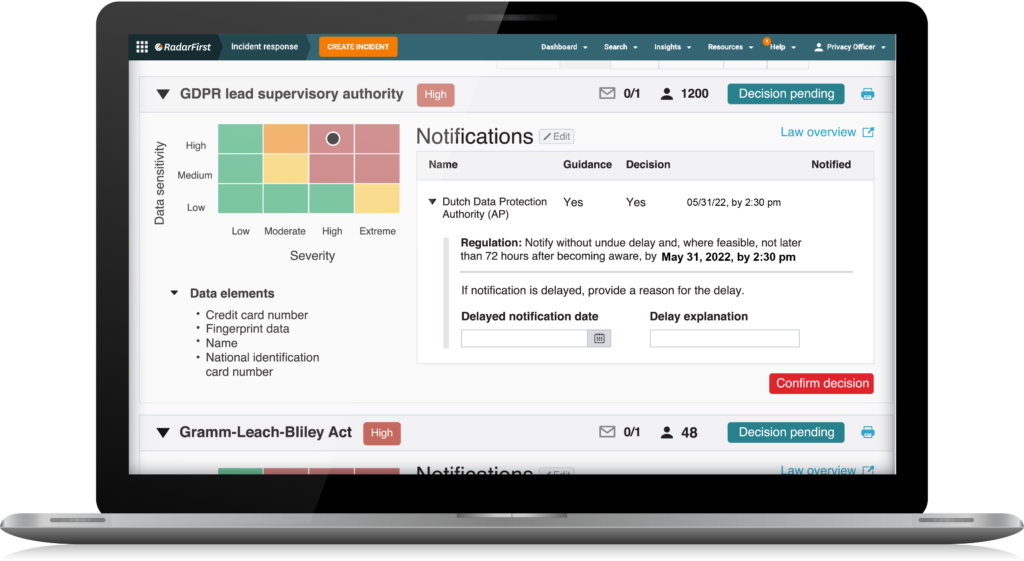 By leveraging Radar® Privacy’s patented Breach Guidance Engine™ for assessing privacy incidents, the organization will be able to meet the most stringent notification obligations under state,
